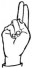 На ћирилици написано ДАВИД ОЛУЈИЋ састоји се из 11 слова [?]. Исписано ћириличном једноручном азбуком за глувонеме: